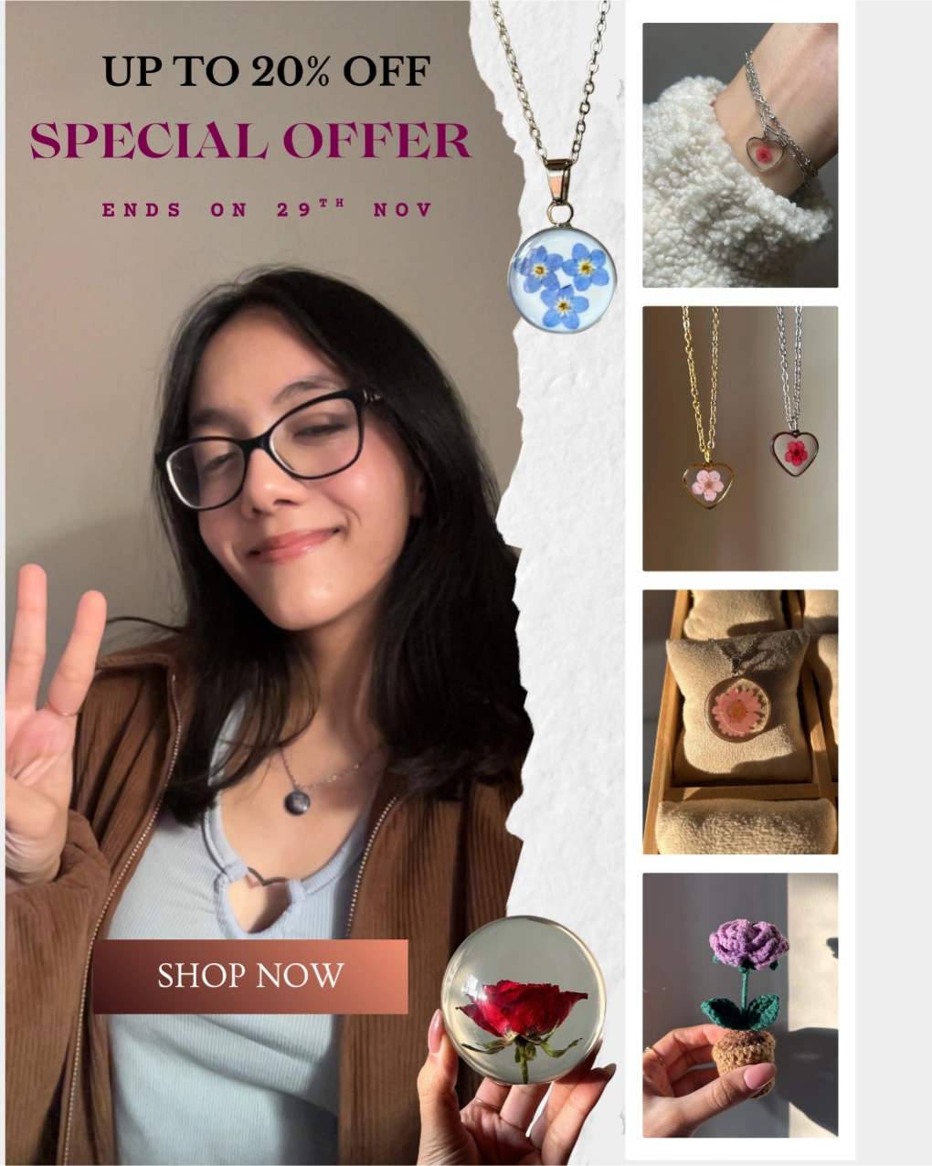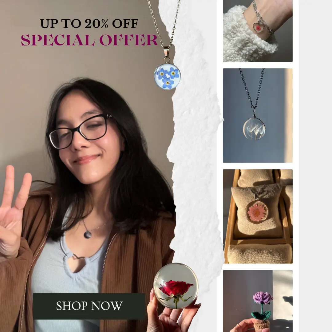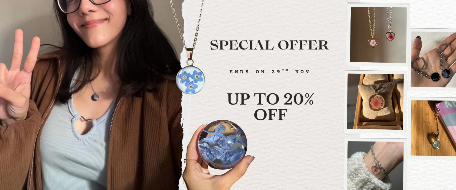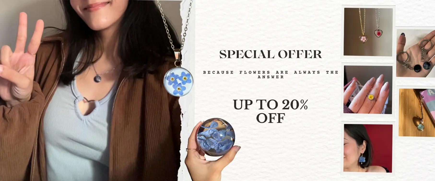 You will find a large variety of real flowers that are preserved into jewellery, crochet flowers that are handcrafted with love, and our best selling, moon phase jewellery that lets you carry a piece of your special day. ππΌπΉπ