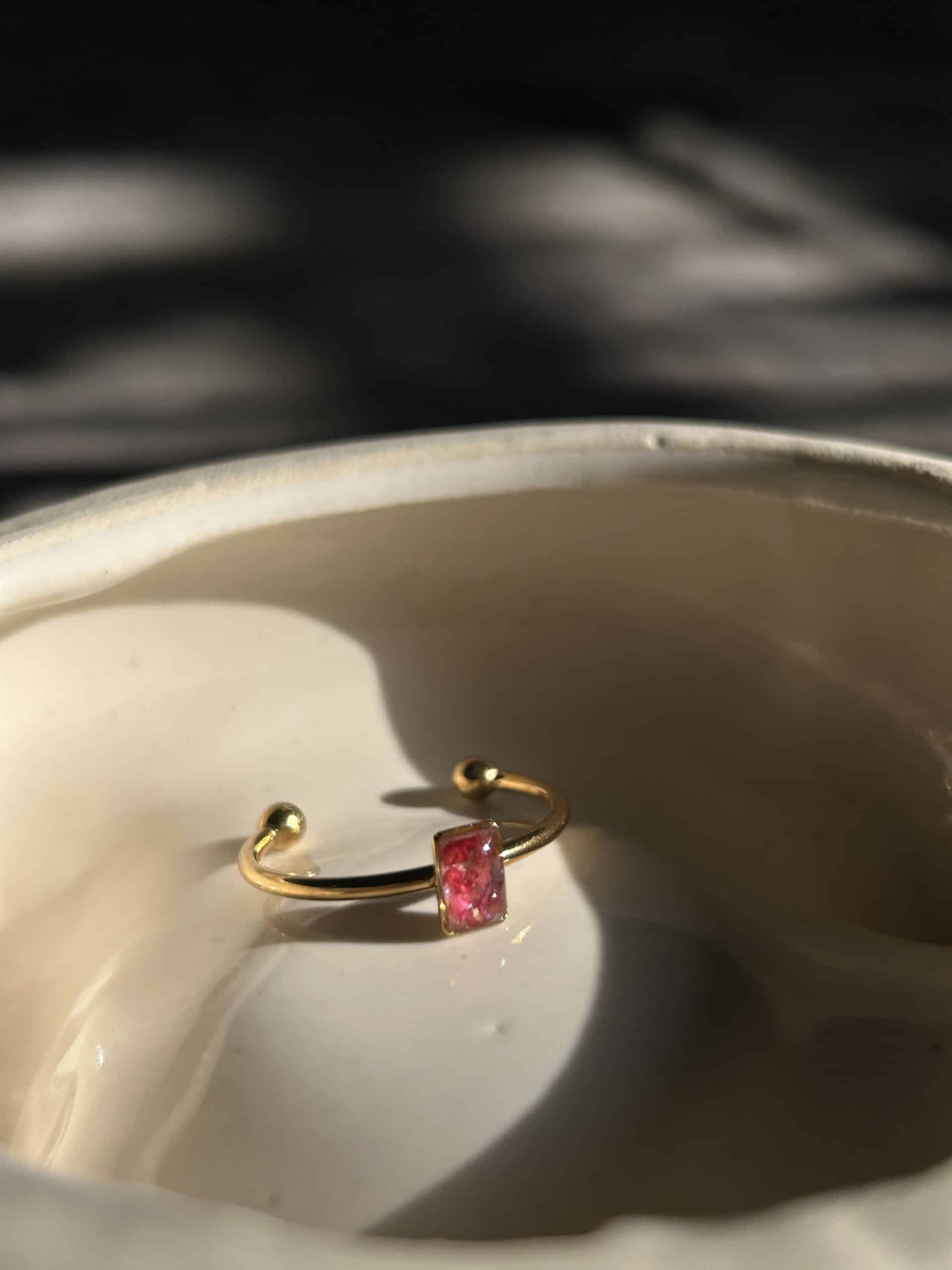 Flower: Crushed bougainvillea petals in a rich ruby-pink shade (symbolises passion and vibrance)