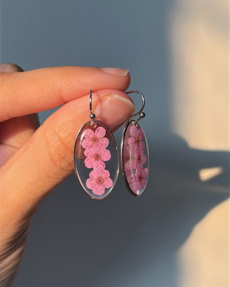 Stainless steel earrings, made with real dried flowers. It’s light weight, hypoallergenic and tarnish free!