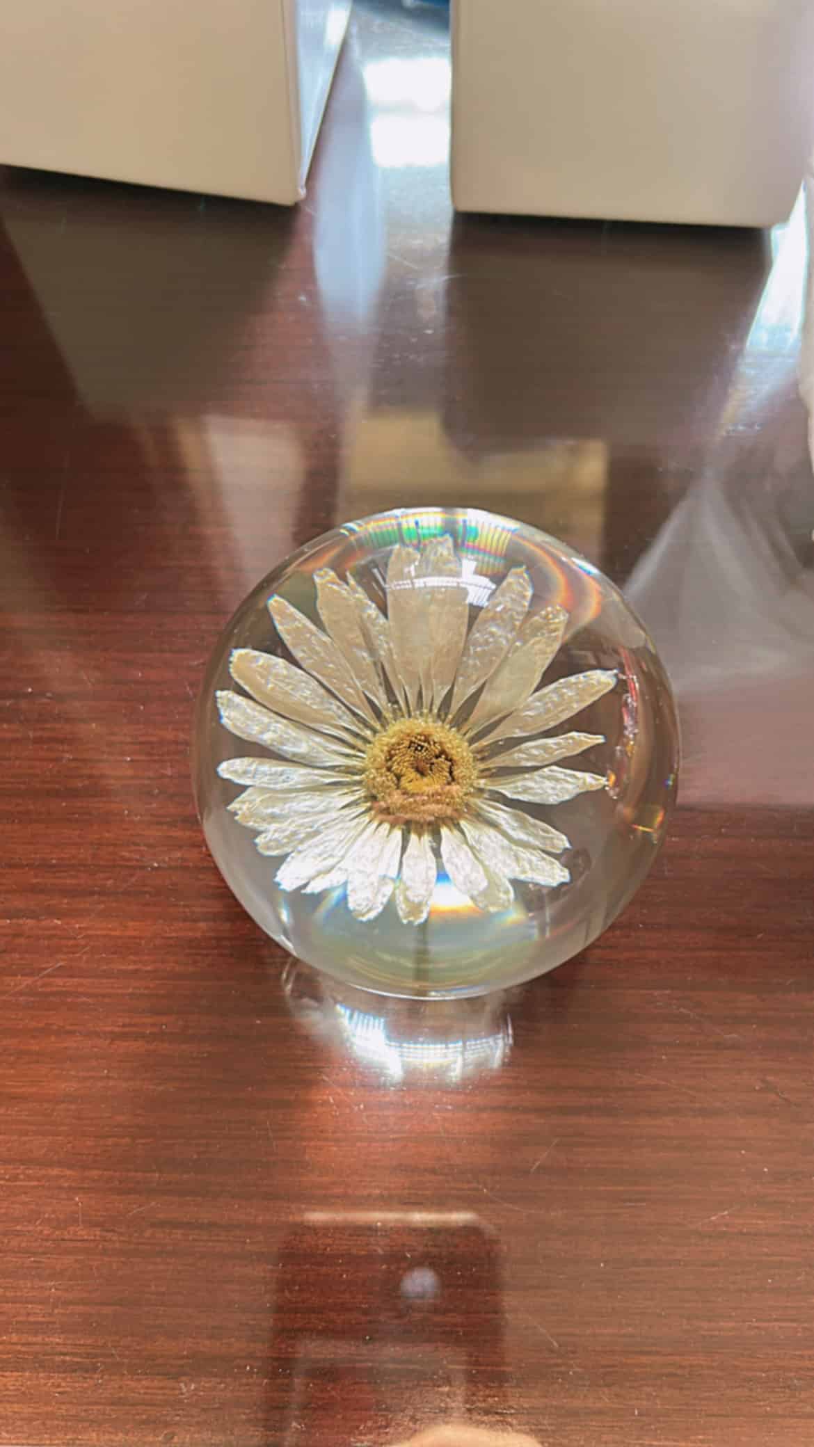 A cheerful little daisy frozen in time. It is perfect to brighten up your desk every day.