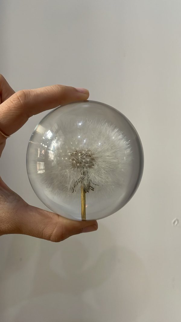 A whole dandelion wish frozen in time. Its perfect for adding a little quiet magic to your desk.