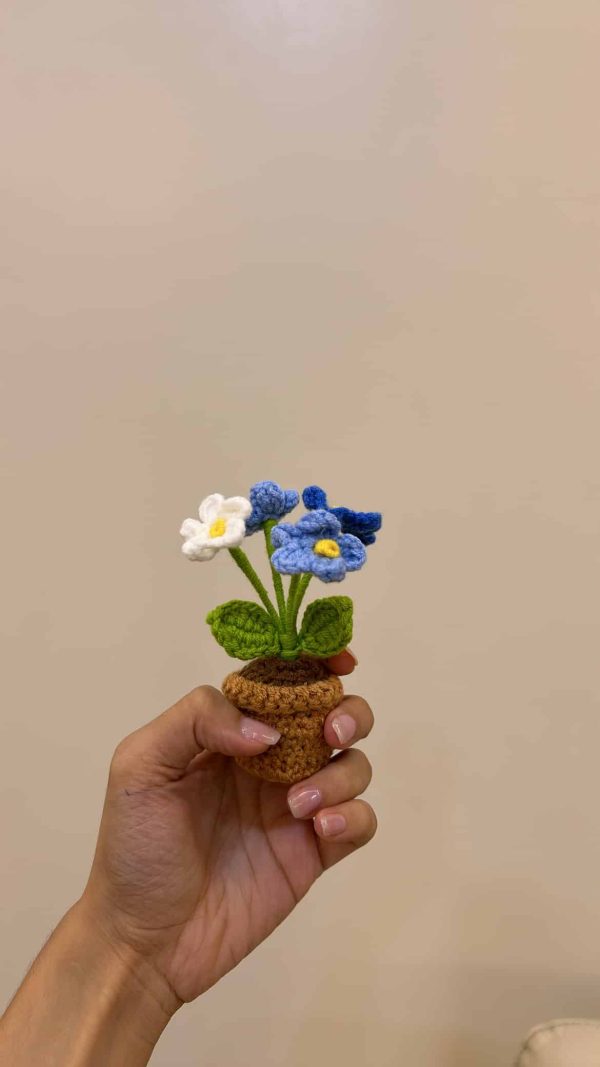 A tiny pot of forget-me-nots! like a little garden of calm you can keep anywhere.