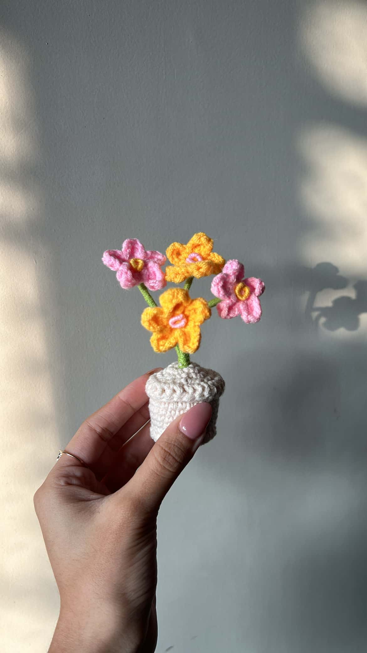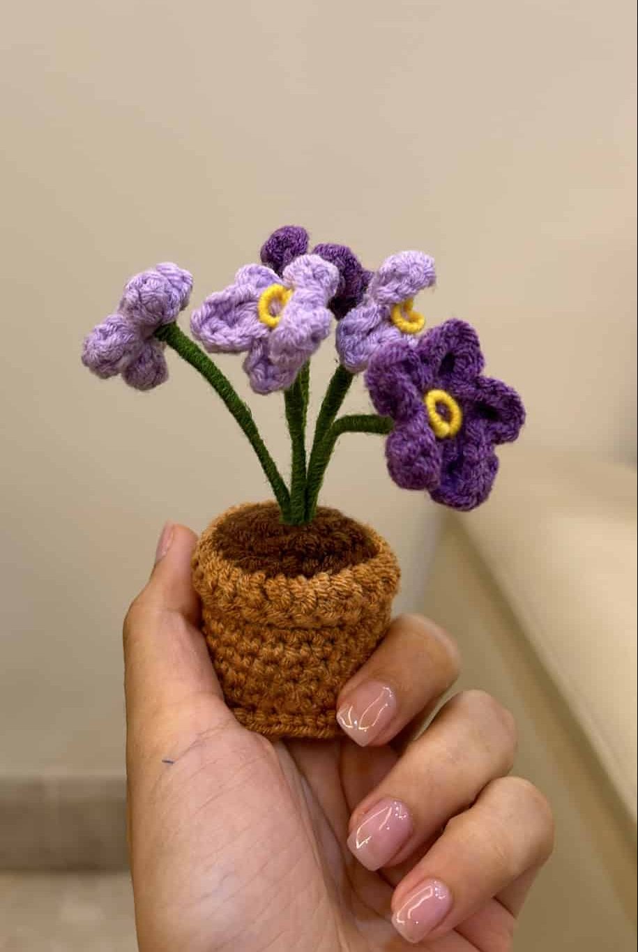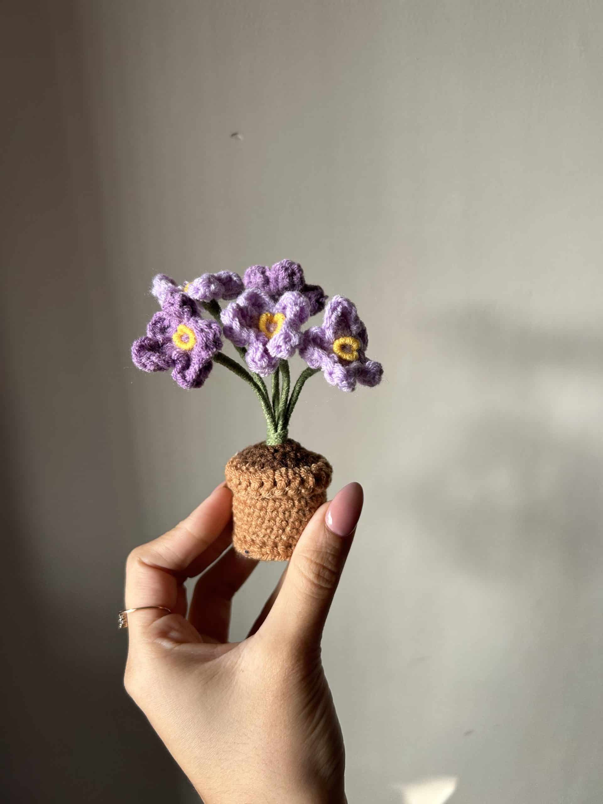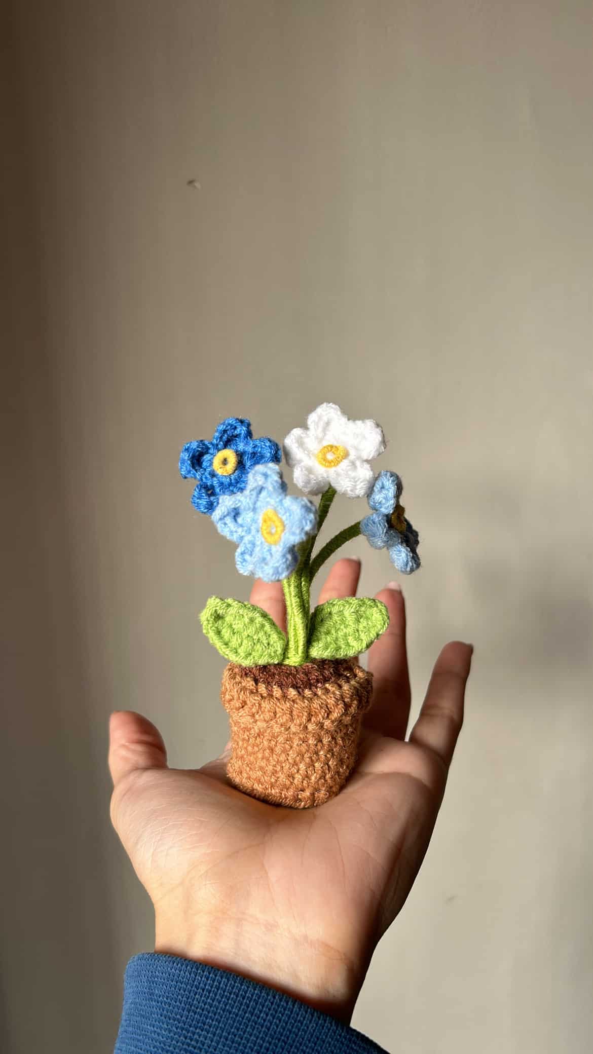 A tiny pot of forget-me-nots! like a little garden of calm you can keep anywhere.