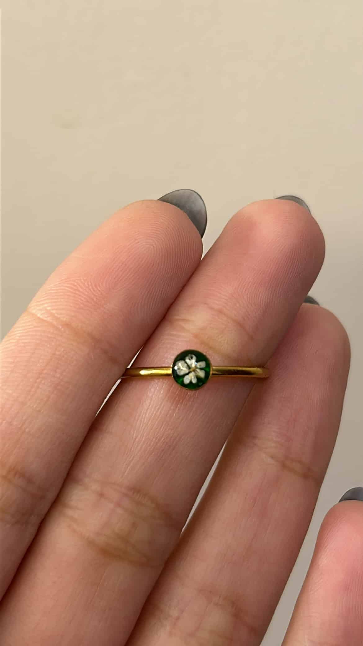 Design: 4 mm base, with a delicate bloom set on a rich emerald-green base