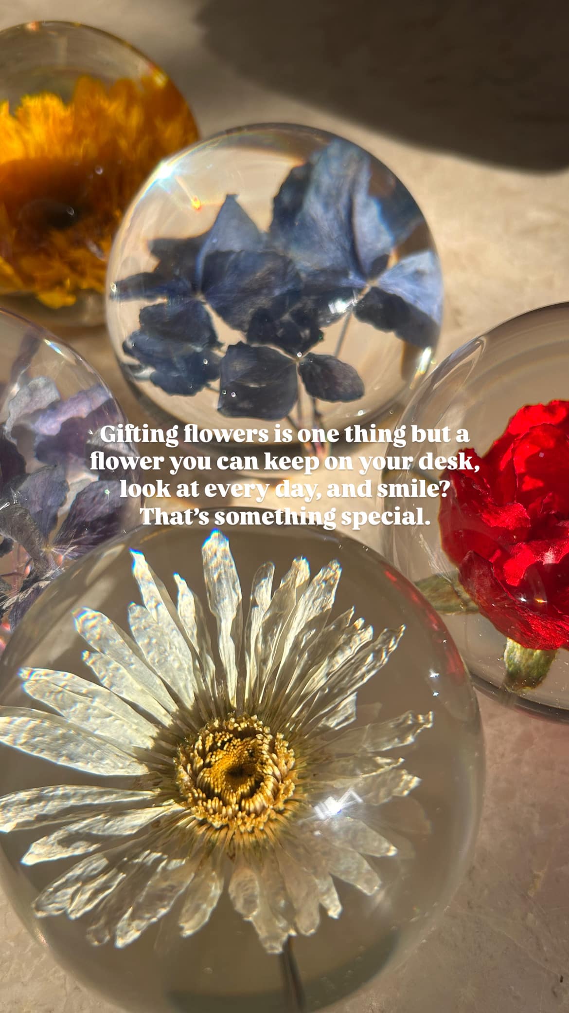 Flower: Real blue hydrangea (symbolises gratitude and deep understanding)