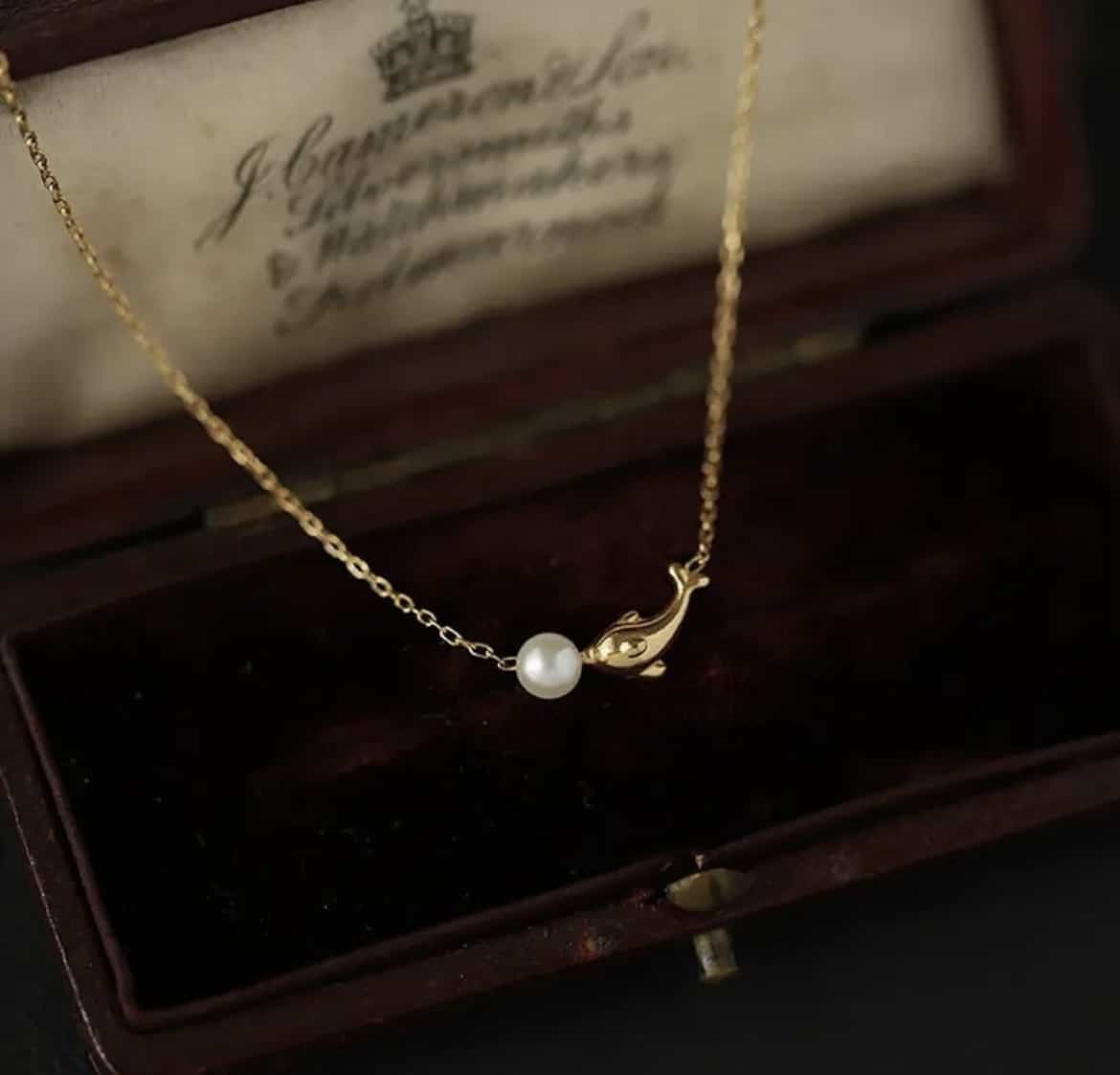 Design: Featuring a tiny faux pearl and a miniature dolphin charm