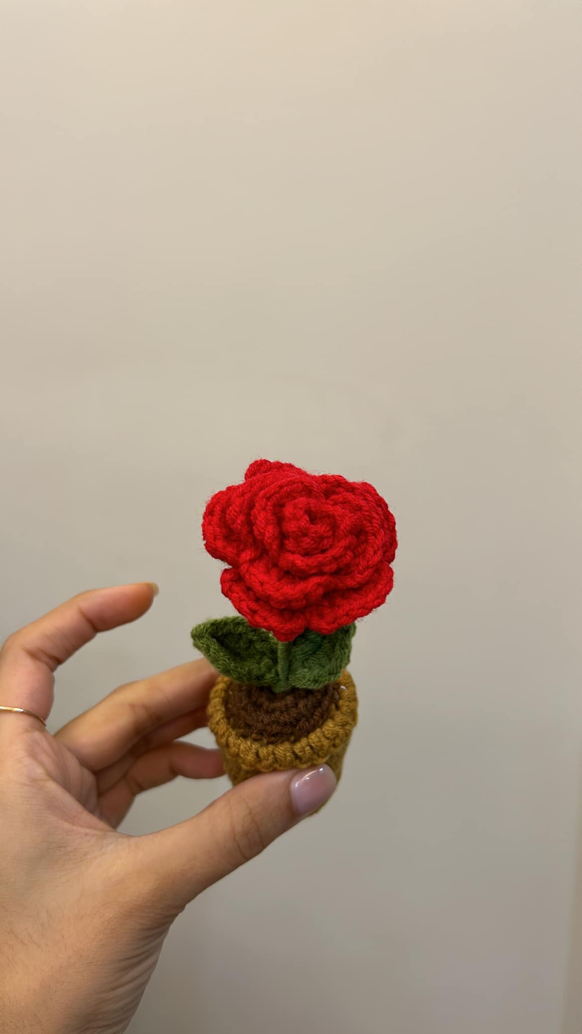 Red Rose Pot: Mini crochet pot with a classic red rose