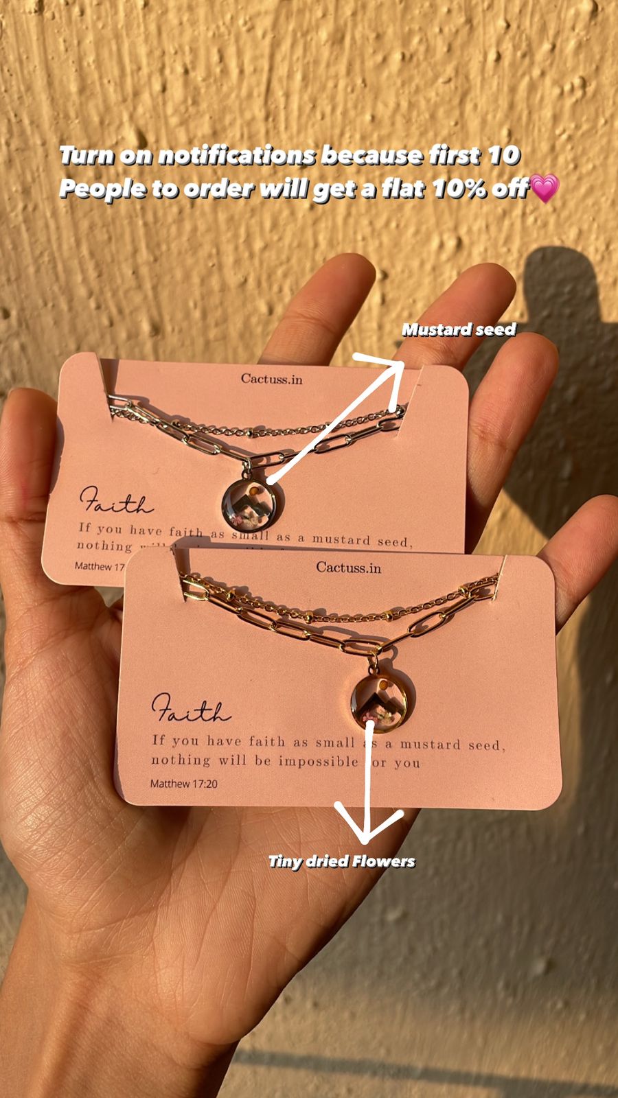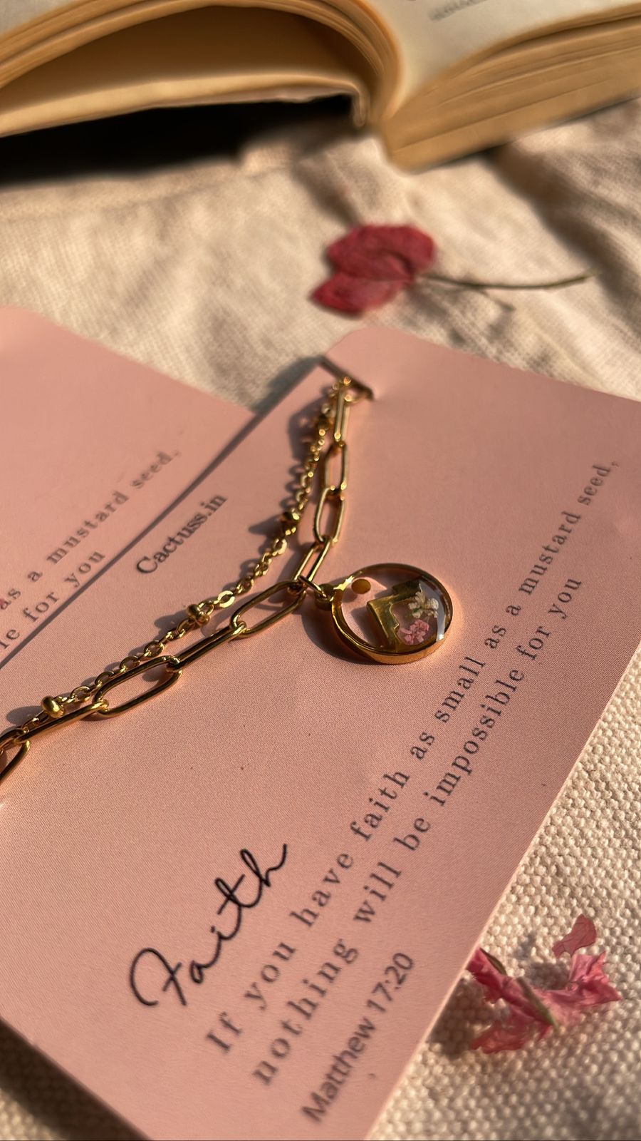 Faith Bracelet: Stainless steel bracelet with a real mustard seed, tiniest flowers and mountains engraving