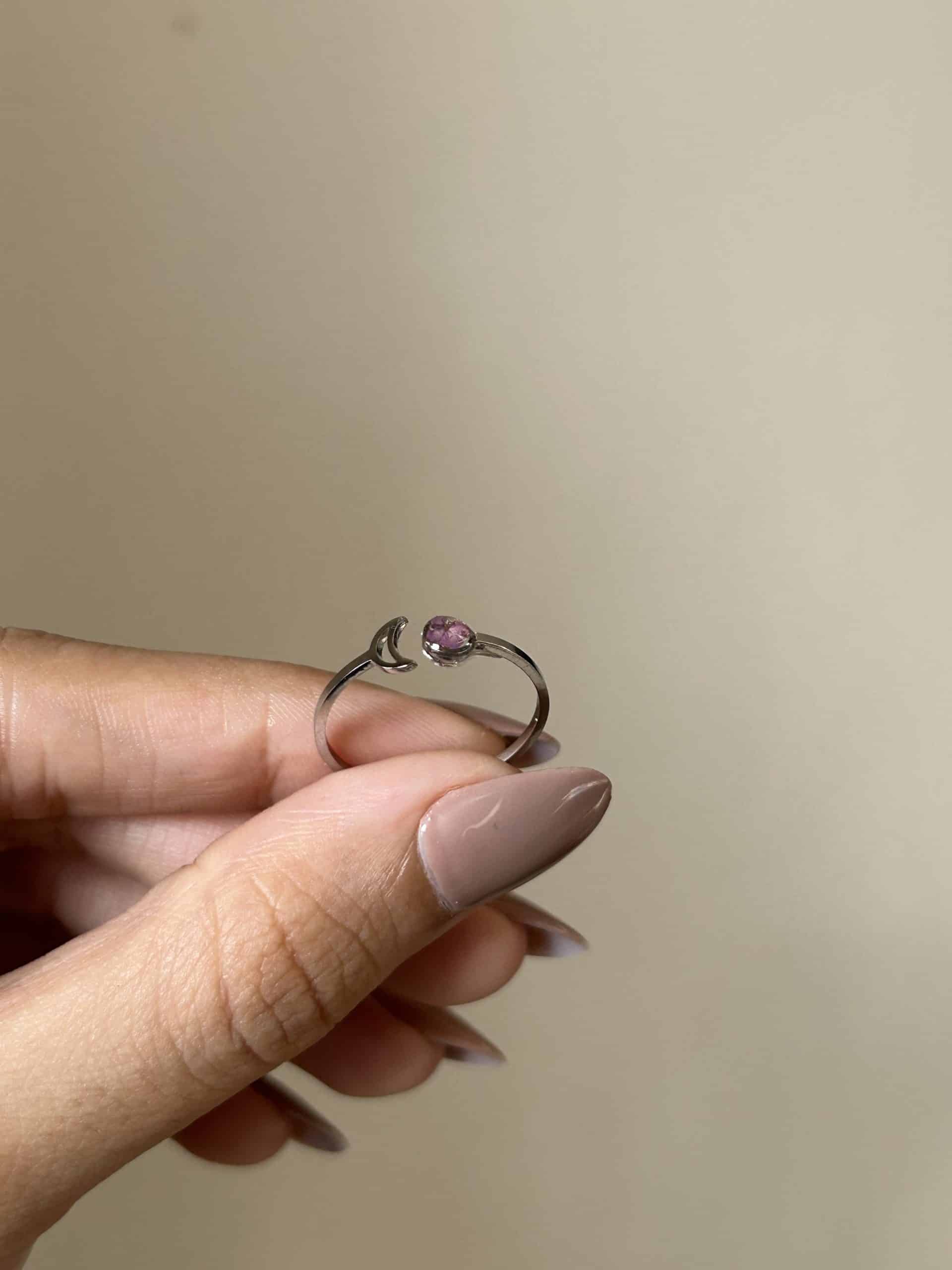 A soft moon holding a tiny flower inside! Feels like a calm evening wrapped around your finger.