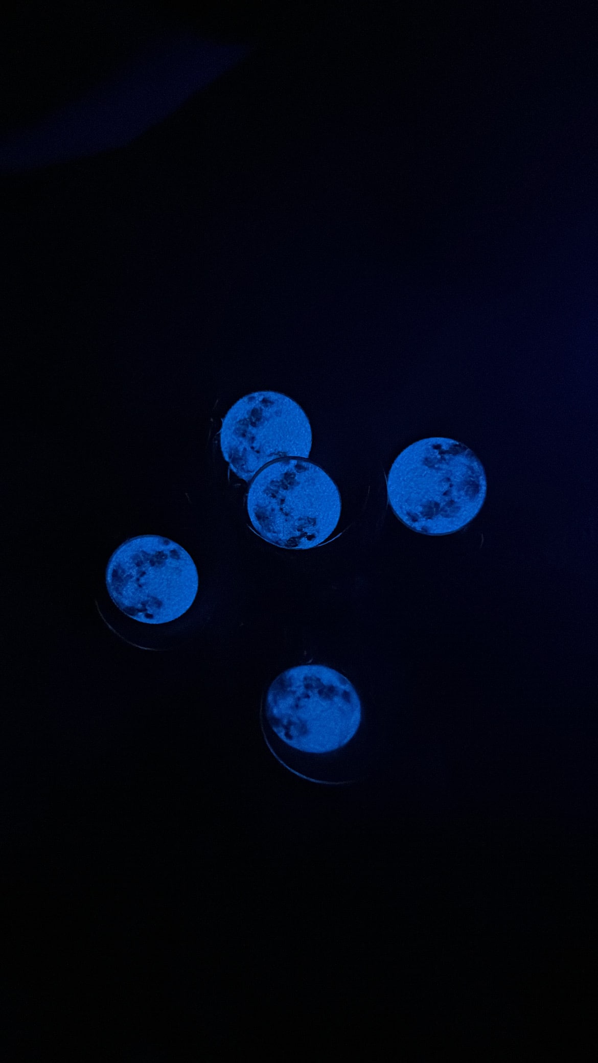 A tiny nebula you can wear! soaking up light by day and glowing like a little star field by night.