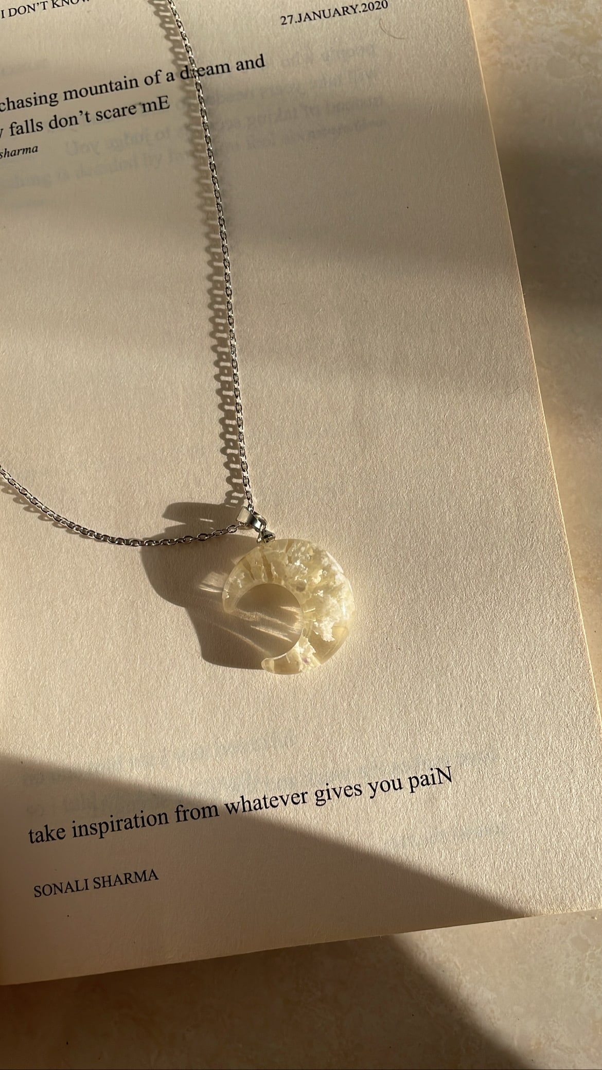 A dreamy little moon that soaks up sunlight by day and glows softly for you at night! like carrying your own tiny night sky.