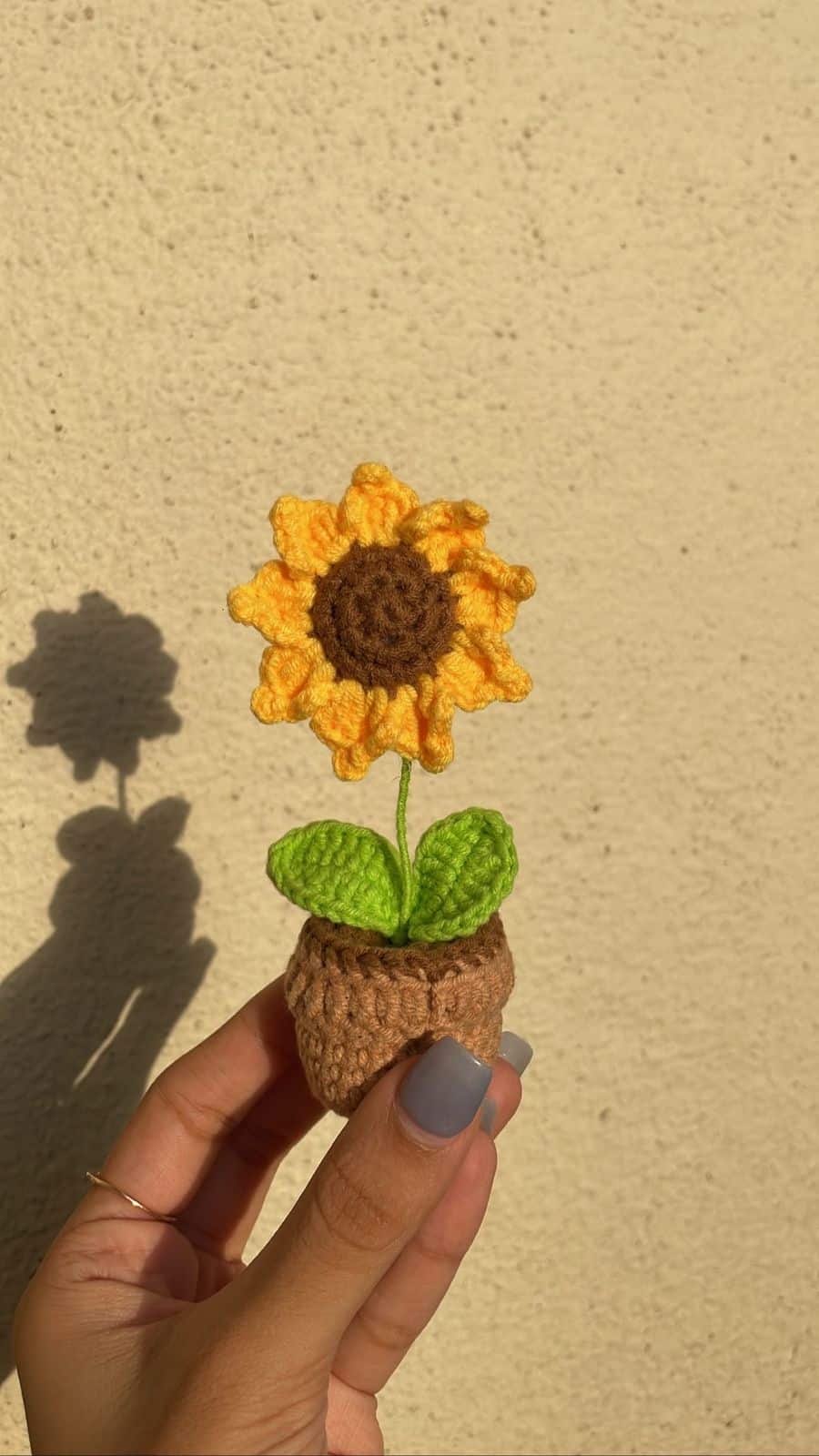 Design: A hand-crafted mini pot featuring a bright, cheerful sunflower that stays sunny forever
